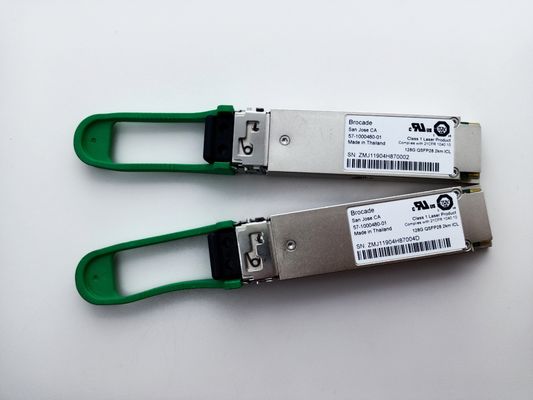 Modul Brocade 4×32 GFC (2 Km) QSFP28 adalah CWDM4 QSFP28 multi-peringkat yang sesuai dengan spesifikasi Fibre Channel 28,025 Gbps.