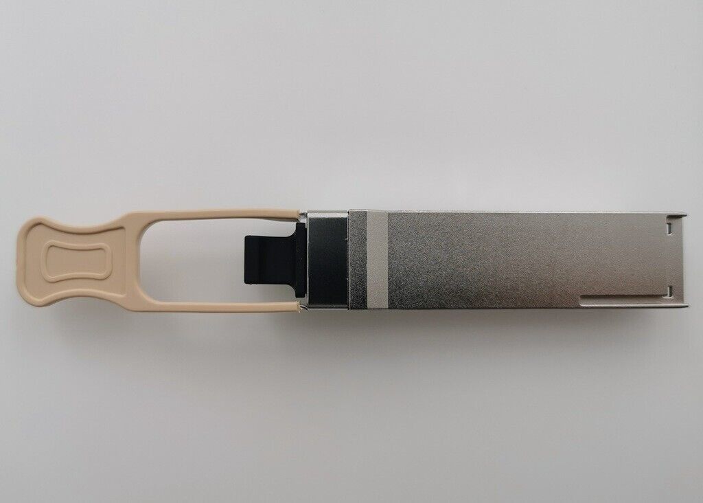memungkinkan interoperabilitas optik hingga 100m melalui kabel OM4 multi-mode optik MPO 8-fiber (atau 12-fiber).Tab tarik memfasilitasi penyisipan